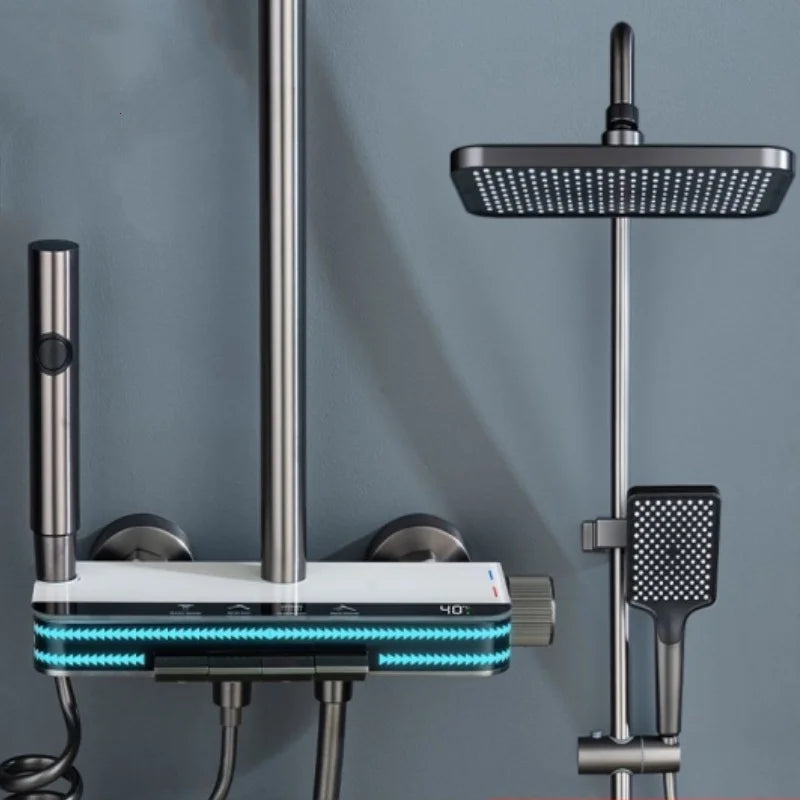 Hot Cold Temperature Digital Display Shower Set White Shower Faucet System Set With Ambient Light Bathroom Faucet Shower Head