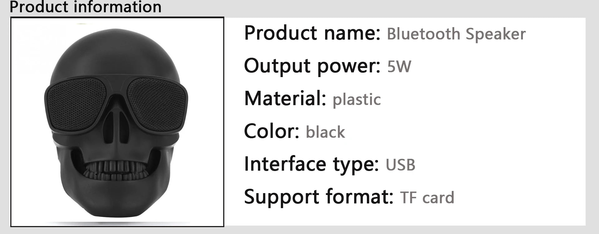 Portable Mini-Skull Speakers Little Skull Wireless Bluetooth Cartoon Bones Ghost Head Small Compatible 5W Hd Stereo Woofer Music